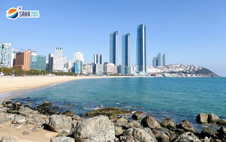 - Quý khách tự do tham quan bãi biển Haeundae: Là bãi biển rộng nhất tại Busan