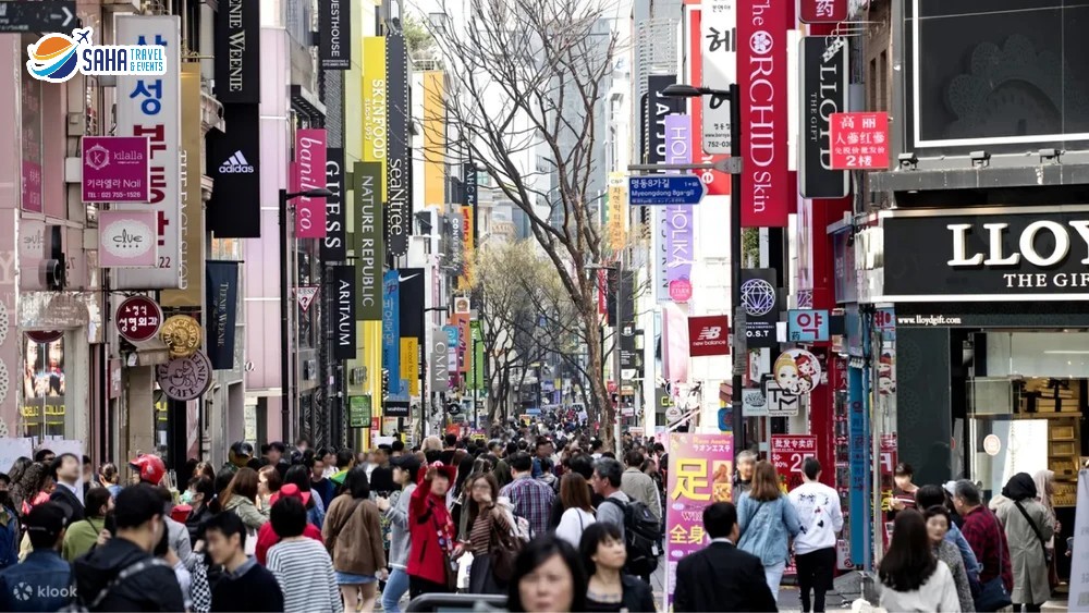 - Khu phố Myeongdong – một khu phố nổi tiếng bậc nhất với không khí vô cùng sôi động và nhộp nhịp